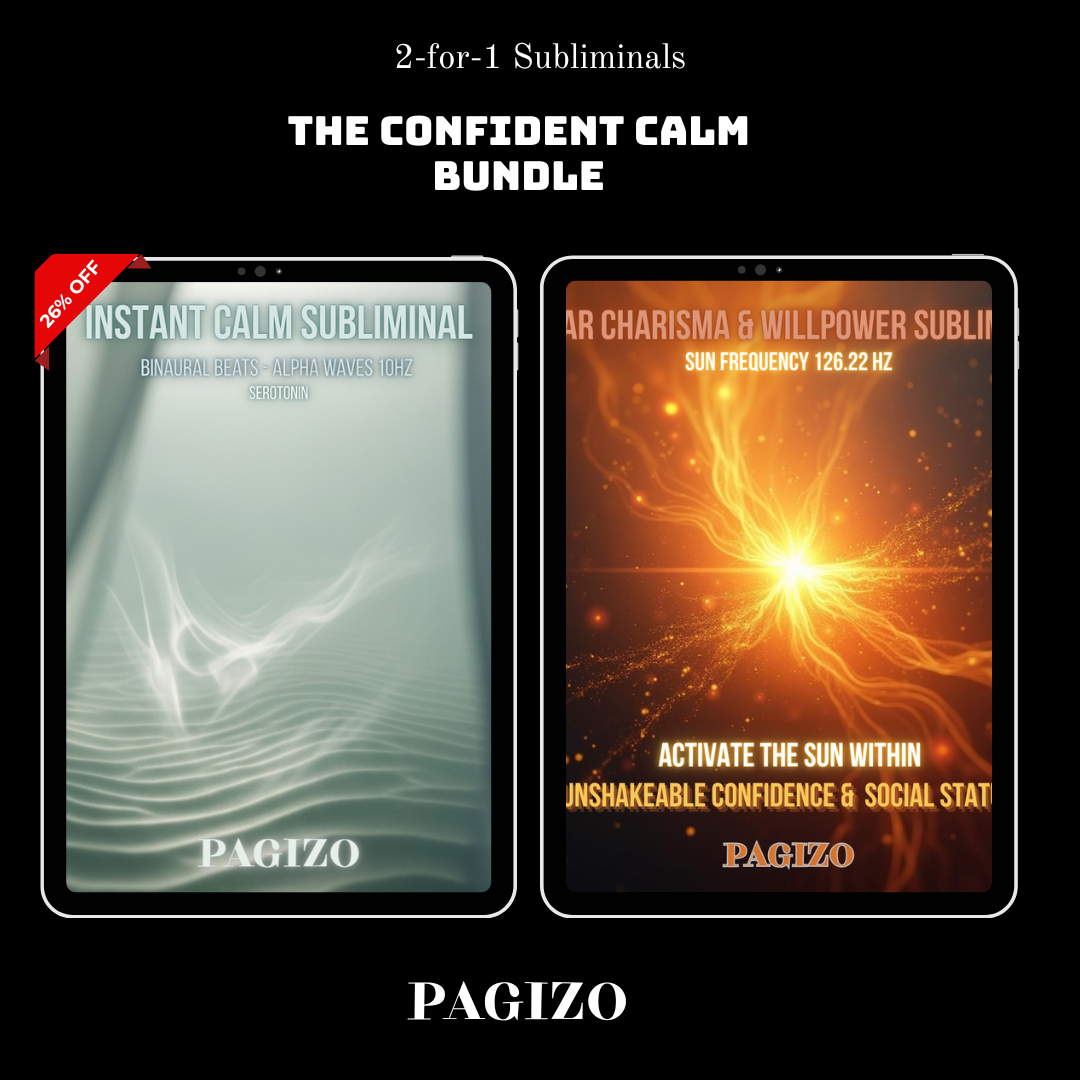 Ready to find your calm center and unleash your natural charisma? We've brought together two of our most popular subliminals into one powerful package: the Confident Calm Bundle. This bundle features both our Instant Calm and Solar Charismaย & Willpower subliminals, designed to help you feel grounded, confident, and truly shine from within.